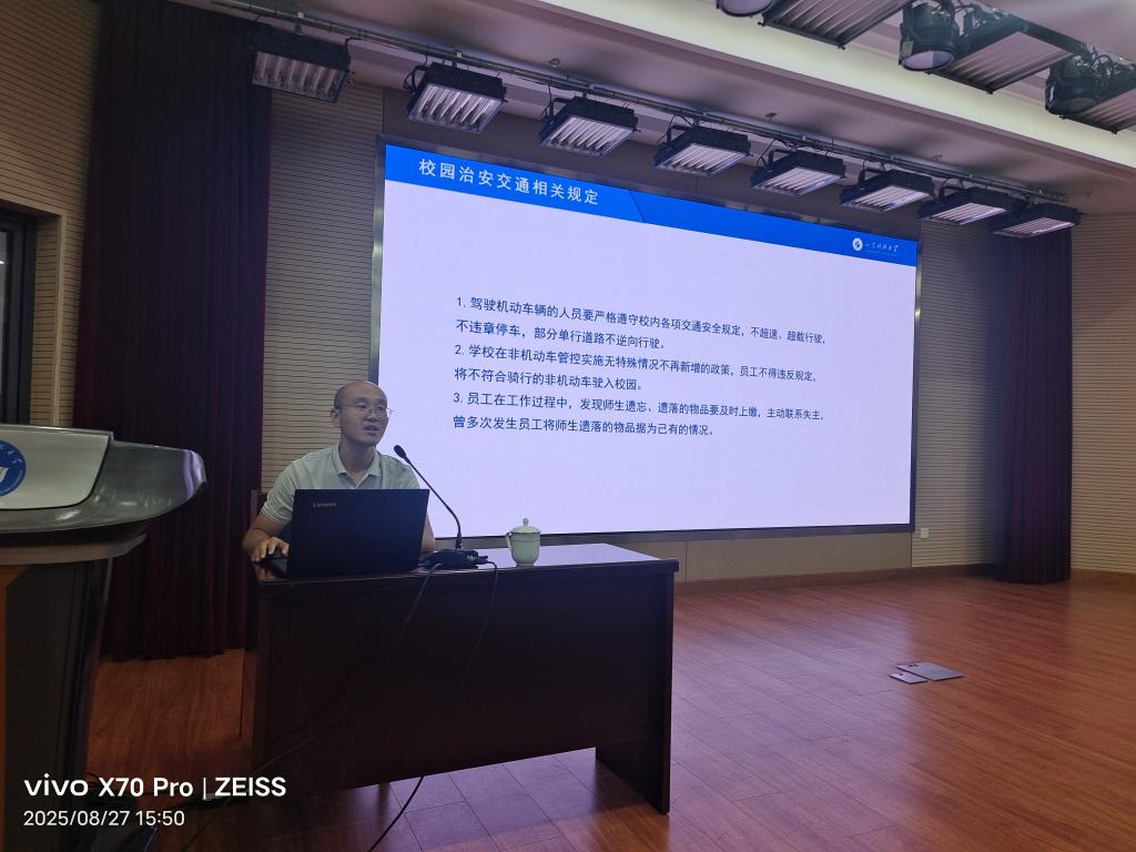 后勤管理处副处长杜中华做开班动员,就做好秋季学期各项服务保障工作提出四点要求:一是强化主体责任,加强安全生产;二是加强员工培训,提升服务技能;三是不断学习创新,优化后勤服务品质;四是遵守各项规章制度,爱岗敬业。