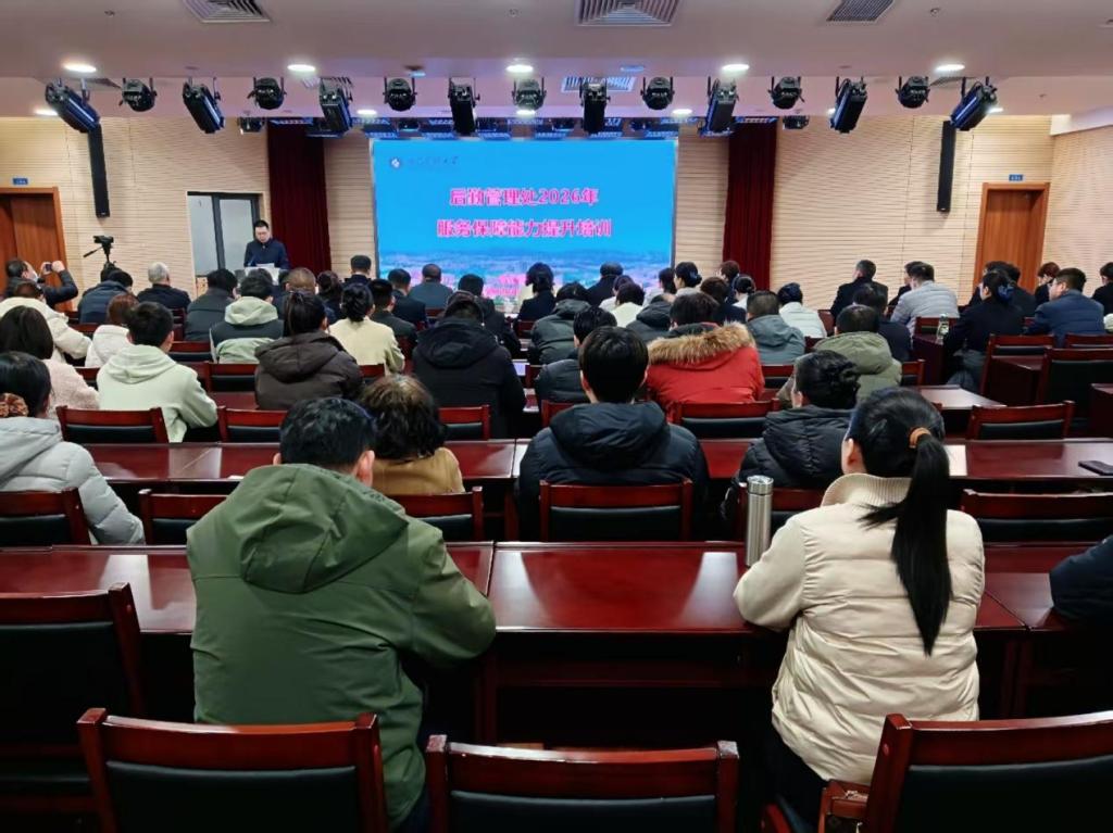 春回大地,万象更新。为进一步夯实服务保障基础,推动后勤工作再上新台阶,3月4日至6日,后勤管理处召开2026年服务保障能力提升专题培训会。后勤管理处处长韩汝军、副处长杜中华、各二级单位主要负责人及一、二级主任,各餐饮单位主要负责人、班组长和部分一线员工等共200余人参加了此次培训。校党委常委、副校长朱敬义出席会议并致辞。会议由后勤党总支书记马鹤主持。