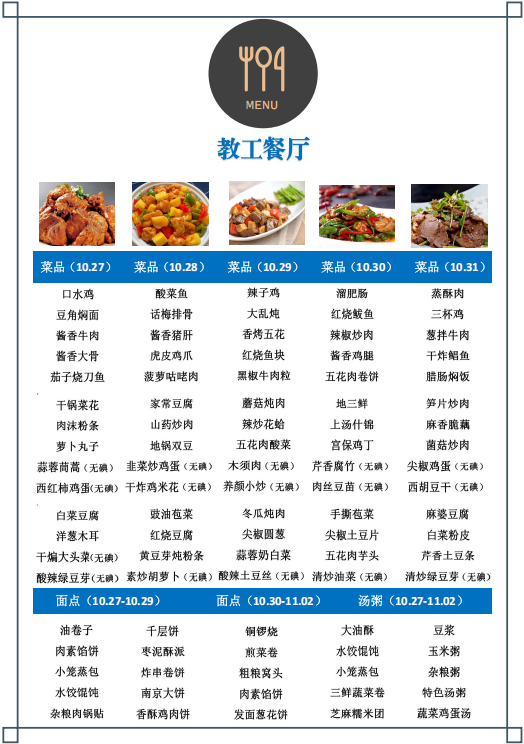 教工餐厅第九周菜单