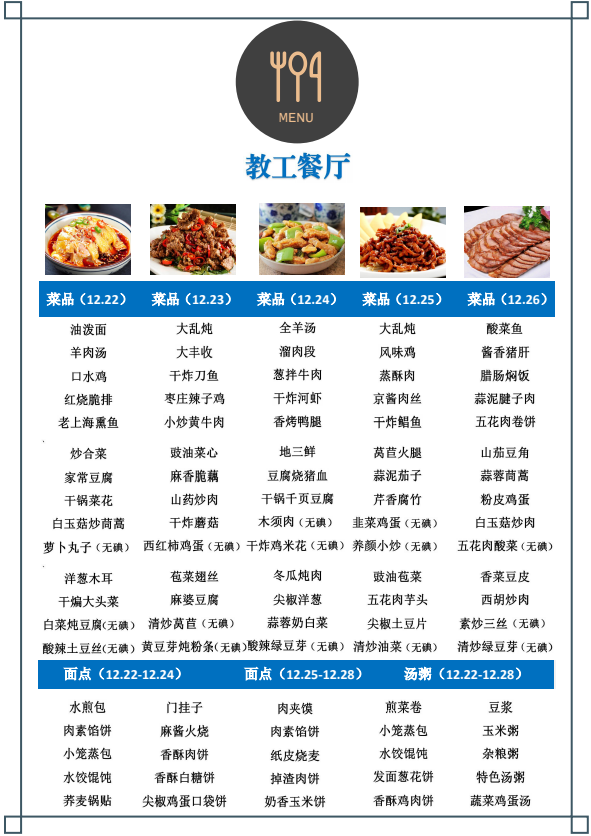 教工餐厅第十七周菜单