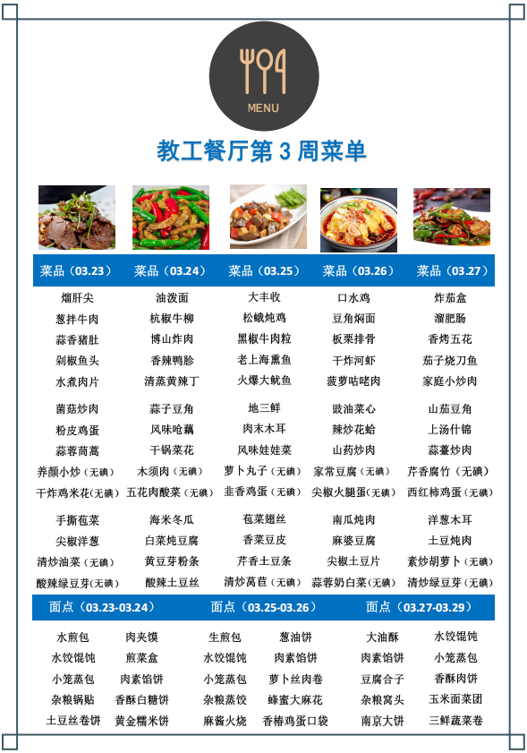 教工餐厅第三周菜单