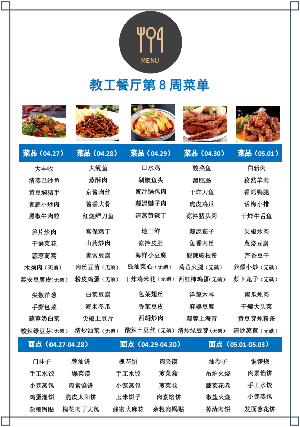 教工餐厅第八周菜单